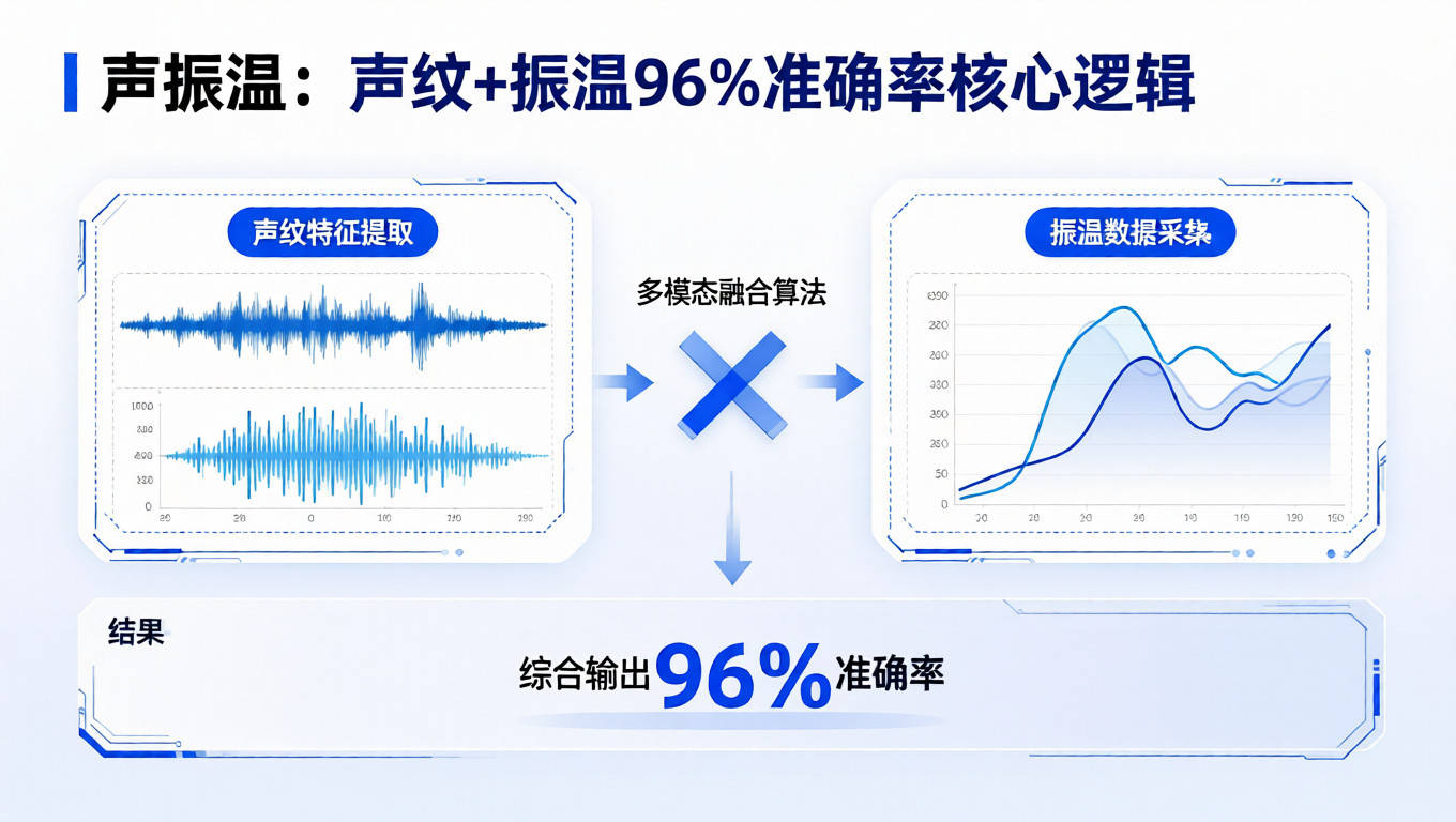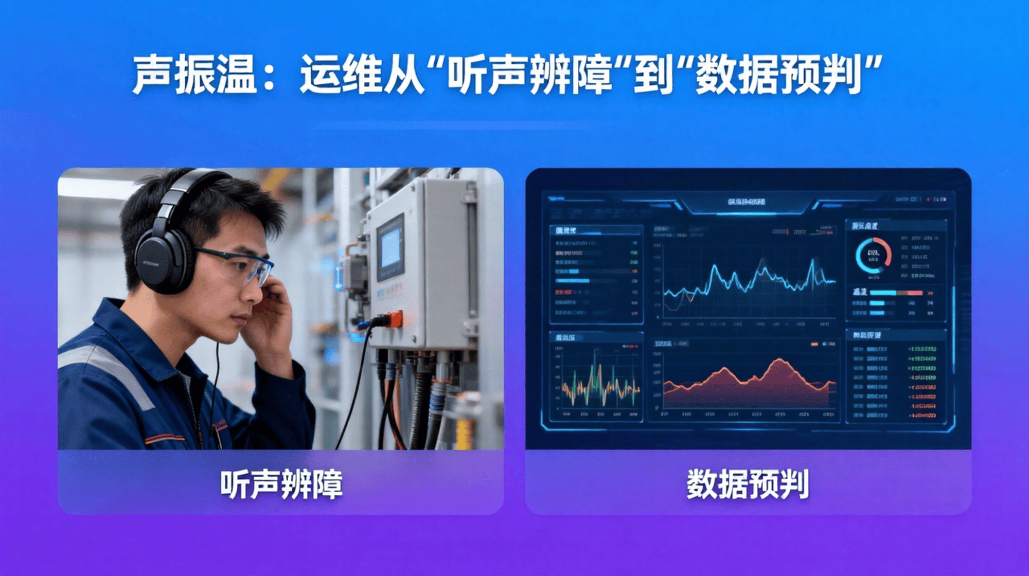如今,一套声振温协同监测系统改写了这种“事后救火”的困境。它不仅是设备的“智能听诊器”,更通过声纹、振动、温度三维数据联动分析,将故障预警窗口提前数天,核心故障诊断准确率达96%,推动运维从“凭经验”升级为“靠数据”。