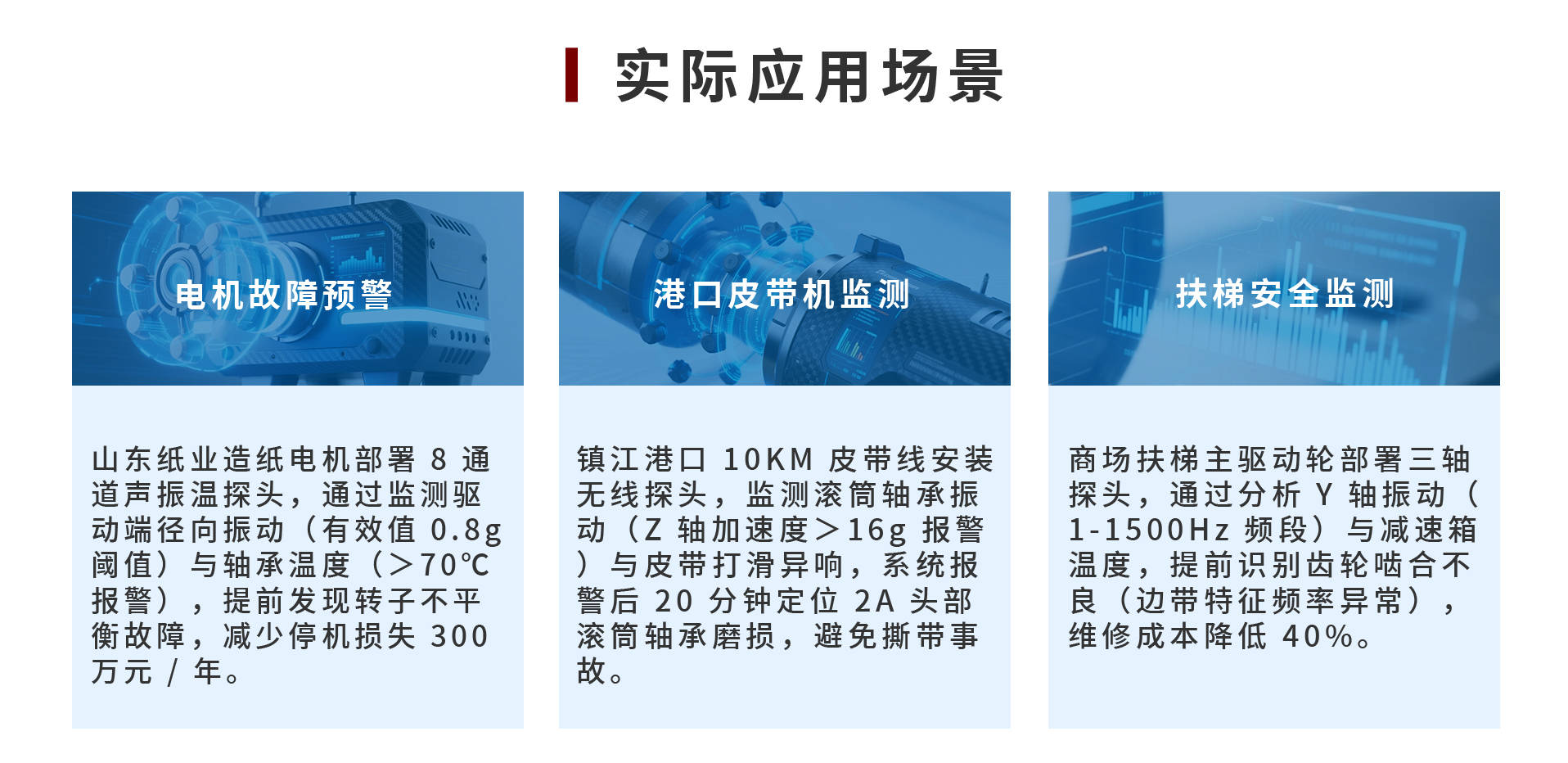 相较于传统单一参数监测,这套系统解决了三大行业痛点:电机轴承缺油时,振动值先于温度异常,避免 "温度未超标却突然卡死" 的窘境;风机叶轮积灰初期,声纹特征变化早于振动峰值,提前 2 周预警潜在失衡风险;泵机气蚀故障中,三维数据交叉验证可将误报率从 25% 降至 3%,让运维人员不再被 "狼来了" 困扰。